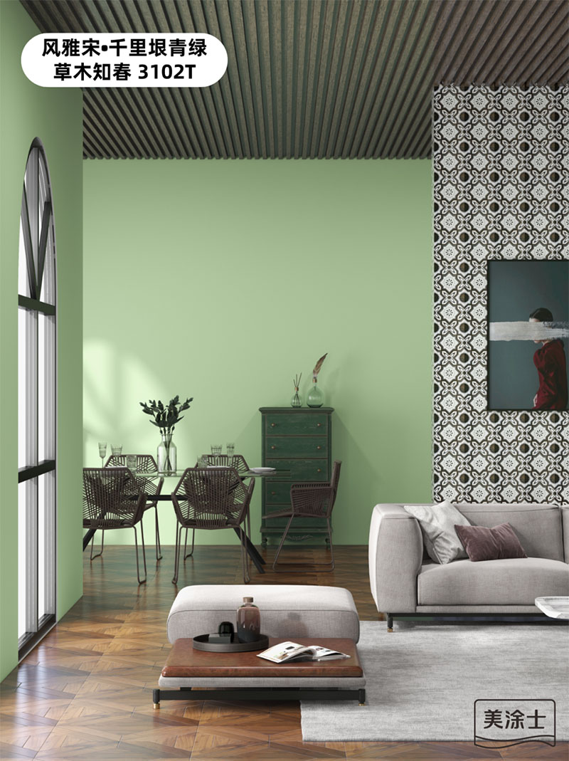 合乐HL8集团国潮色草木知春3102T,弱化了复古绿的陈旧感,强化了空间的时髦感,与灰白软装的搭配,一明一暗的对比,一冷一暖的融合,奢华的质感与复古的气息碰撞,勾勒出低调的高级时尚感,让空间的气场和颜值达到峰值。